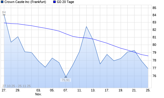 Mit dem Rücksetzer auf 77,96 EUR hat die Crown Castle International-Aktie am 24.11.2025 die 20-Tage-Linie nach unten gekreuzt.Die Crown Castle International-Aktie befindet sich seit dem ...weiterlesen