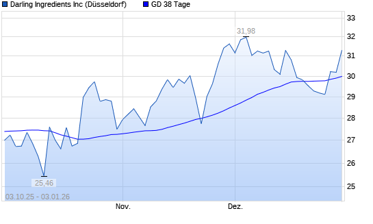 Mit dem Anstieg auf 33,46 EUR hat die Darling Ingredients-Aktie (ISIN US2372661015) am 09.01.2026 ein neues 6-Monats-Hoch erreicht und damit den Kurs vom 08.01.2026 eingestellt.Die Darling Ingredients-Aktie ...weiterlesen