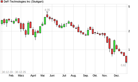 Mit dem Rücksetzer auf 0,63 EUR hat die Defi Technologies-Aktie (ISIN CA2449161025) am 29.12.2025 ein neues 12-Monats-Tief erreicht und damit den Kurs vom 23.12.2025 eingestellt.Die Defi ...weiterlesen