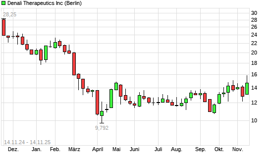 Mit dem Anstieg auf 15,02 EUR hat die Denali Therapeutics-Aktie (ISIN US24823R1059) am 13.11.2025 ein neues 6-Monats-Hoch erreicht und damit den Kurs vom 12.11.2025 eingestellt.Die Denali Therapeutics-Aktie ...weiterlesen