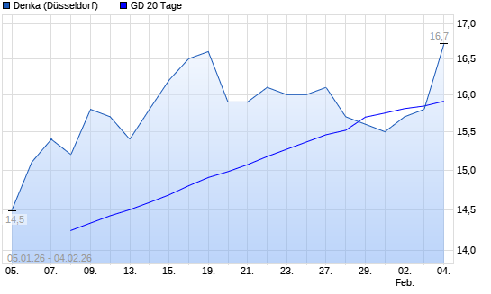 Mit dem Anstieg auf 16,20 EUR hat die Denka-Aktie am 03.02.2026 die 20-Tage-Linie nach oben gekreuzt.Die Denka-Aktie befindet sich seit dem 10.11.2025 im langfristigen Aufwärtstrend und hat ...weiterlesen