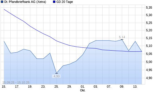 Mit dem Rücksetzer auf 5,05 EUR hat die Deutsche Pfandbriefbank-Aktie am 14.10.2025 die 20-Tage-Linie nach unten gekreuzt.Die Deutsche Pfandbriefbank-Aktie befindet sich seit dem 29.08.2025 ...weiterlesen