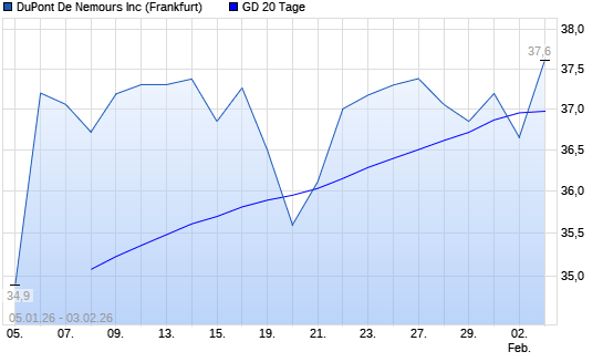 Mit dem Rücksetzer auf 36,65 EUR hat die DuPont-Aktie am 02.02.2026 die 20-Tage-Linie nach unten gekreuzt.Die DuPont-Aktie befindet sich seit dem 15.10.2025 im langfristigen Aufwärtstrend ...weiterlesen