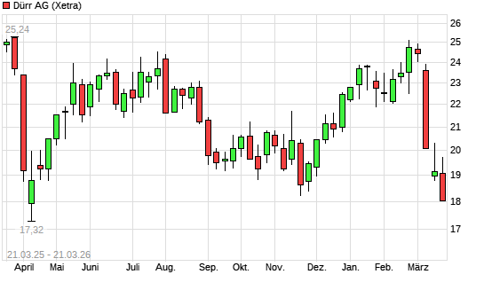 Mit dem Rücksetzer auf 17,98 EUR hat die Dürr-Aktie (ISIN DE0005565204) am 20.03.2026 ein neues 12-Monats-Tief erreicht und damit den Kurs vom 20.11.2025 eingestellt.Die ...weiterlesen