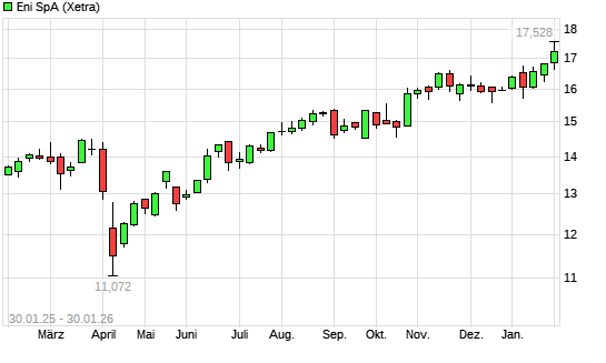 Mit dem Anstieg auf 18,26 EUR hat die ENI-Aktie (ISIN IT0003132476) am 11.02.2026 ein neues 10-Jahres-Hoch erreicht und damit den Kurs vom 10.02.2026 eingestellt.Die ENI-Aktie befindet sich ...weiterlesen