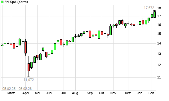 Mit dem Anstieg auf 17,66 EUR hat die ENI-Aktie (ISIN IT0003132476) am 04.02.2026 ein neues 10-Jahres-Hoch erreicht und damit den Kurs vom 29.01.2026 eingestellt.Die ENI-Aktie befindet sich ...weiterlesen