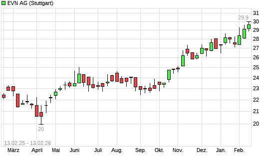 Mit dem Anstieg auf 29,70 EUR hat die EVN-Aktie (ISIN AT0000741053) am 12.02.2026 ein neues 12-Monats-Hoch erreicht und damit den Kurs vom 11.02.2026 eingestellt.Die EVN-Aktie ...weiterlesen