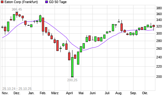Mit dem Anstieg auf 319,80 EUR hat die Eaton-Aktie am 24.10.2025 die 50-Tage-Linie nach oben gekreuzt.Die Eaton-Aktie befindet sich seit dem 05.09.2025 im langfristigen Aufwärtstrend und hat ...weiterlesen