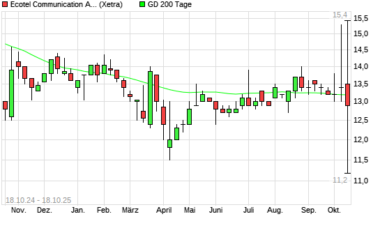 Mit dem Rücksetzer auf 12,70 EUR hat die Ecotel Communication-Aktie am 17.10.2025 die 200-Tage-Linie nach unten gekreuzt.Die Ecotel Communication-Aktie befand sich seit dem 07.10.2025 im ...weiterlesen