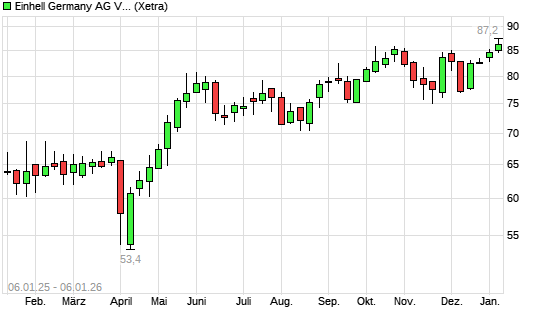 Mit dem Anstieg auf 86,50 EUR hat die Einhell Germany-Aktie (ISIN DE000A40ESU3) am 05.01.2026 ein neues All-Time-High erreicht und damit den Kurs vom 13.10.2025 eingestellt.Die Einhell Germany-Aktie ...weiterlesen