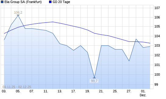 Mit dem Rücksetzer auf 102,80 EUR hat die Elia System Operator-Aktie am 01.12.2025 die 20-Tage-Linie nach unten gekreuzt.Die Elia System Operator-Aktie befindet sich seit dem 11.04.2025 ...weiterlesen