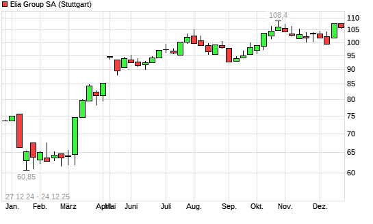 Mit dem Anstieg auf 108,00 EUR hat die Elia System Operator-Aktie (ISIN BE0003822393) am 23.12.2025 ein neues 12-Monats-Hoch erreicht und damit den Kurs vom 18.12.2025 eingestellt.Die Elia System ...weiterlesen