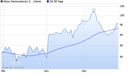 Mit dem Anstieg auf 95,30 EUR hat die Elmos Semiconductor-Aktie am 29.12.2025 die 38-Tage-Linie nach oben gekreuzt.Die Elmos Semiconductor-Aktie befindet sich seit dem 09.05.2025 im langfristigen ...weiterlesen