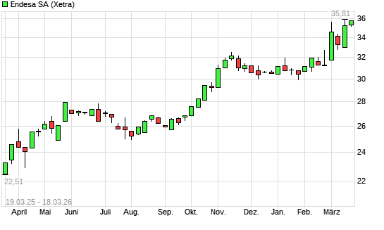 Mit dem Anstieg auf 35,71 EUR hat die Endesa-Aktie (ISIN ES0130670112) am 17.03.2026 ein neues All-Time-High erreicht und damit den Kurs vom 16.03.2026 eingestellt.Die ...weiterlesen