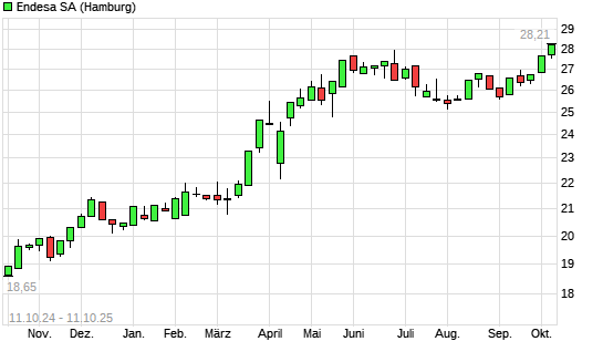Mit dem Anstieg auf 27,97 EUR hat die Endesa-Aktie (ISIN ES0130670112) am 10.10.2025 ein neues All-Time-High erreicht und damit den Kurs vom 09.10.2025 eingestellt.Die Endesa-Aktie befindet ...weiterlesen