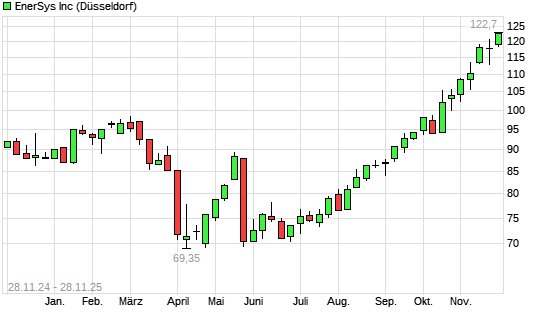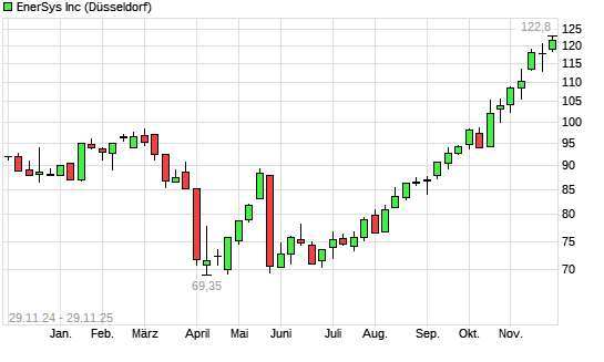 Mit dem Anstieg auf 122,30 EUR hat die EnerSys-Aktie (ISIN US29275Y1029) am 27.11.2025 ein neues All-Time-High erreicht und damit den Kurs vom 26.11.2025 eingestellt.Die EnerSys-Aktie befindet ...weiterlesen