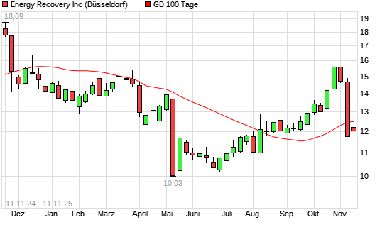 Mit dem Rücksetzer auf 12,03 EUR hat die Energy Recovery-Aktie am 10.11.2025 die 100-Tage-Linie nach unten gekreuzt.Die Energy Recovery-Aktie befindet sich seit dem 07.11.2025 im langfristigen ...weiterlesen