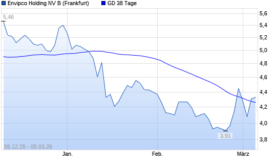 Mit dem Anstieg auf 4,31 EUR hat die Envipco Holding-Aktie am 04.03.2026 die 38-Tage-Linie nach oben gekreuzt.Die Envipco Holding-Aktie befindet sich seit dem 13.10.2025 im ...weiterlesen