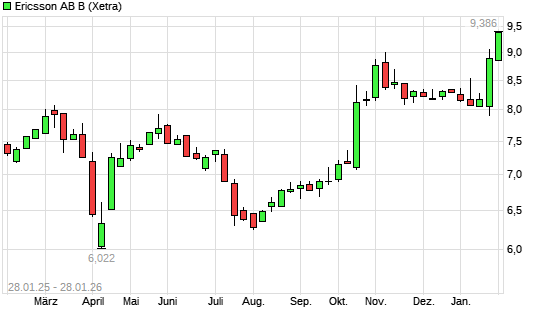 Mit dem Anstieg auf 9,21 EUR hat die Ericsson B-Aktie (ISIN SE0000108656) am 27.01.2026 ein neues 3-Jahres-Hoch erreicht und damit den Kurs vom 03.11.2025 eingestellt.Die Ericsson B-Aktie befindet ...weiterlesen