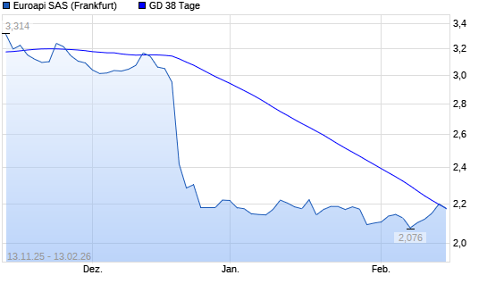 Mit dem Anstieg auf 2,20 EUR hat die Euroapi-Aktie am 12.02.2026 die 38-Tage-Linie nach oben gekreuzt.Die Euroapi-Aktie befindet sich seit dem 16.12.2025 im langfristigen Abwärtstrend und hat ...weiterlesen