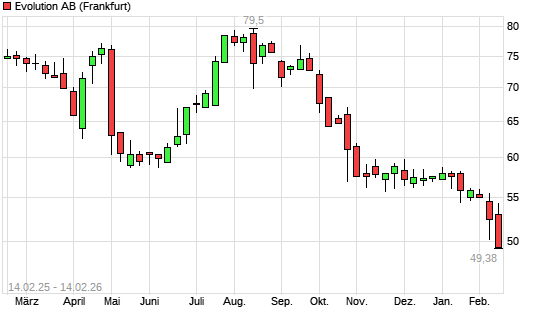 Mit dem Rücksetzer auf 49,38 EUR hat die Evolution Gaming Group-Aktie (ISIN SE0012673267) am 13.02.2026 ein neues 5-Jahres-Tief erreicht und damit den Kurs vom 05.02.2026 eingestellt.Die ...weiterlesen