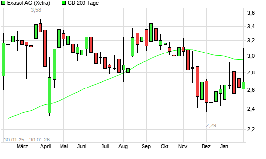 Mit dem Rücksetzer auf 2,78 EUR hat die Exasol-Aktie am 29.01.2026 die 200-Tage-Linie nach unten gekreuzt.Die Exasol-Aktie befand sich seit dem 27.01.2026 im langfristigen Aufwärtstrend ...weiterlesen