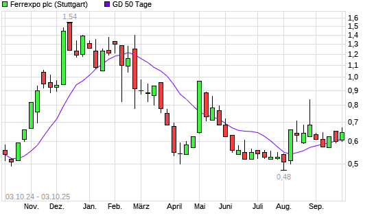Mit dem Anstieg auf 0,65 EUR hat die FERREXPO-Aktie am 02.10.2025 die 50-Tage-Linie nach oben gekreuzt.Die FERREXPO-Aktie befindet sich seit dem 07.05.2025 im langfristigen Abwärtstrend und ...weiterlesen