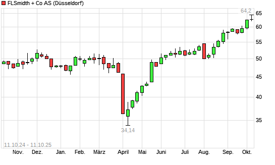 Mit dem Anstieg auf 63,70 EUR hat die FLSmidth-Aktie (ISIN DK0010234467) am 10.10.2025 ein neues 10-Jahres-Hoch erreicht und damit den Kurs vom 09.10.2025 eingestellt.Die FLSmidth-Aktie befindet ...weiterlesen
