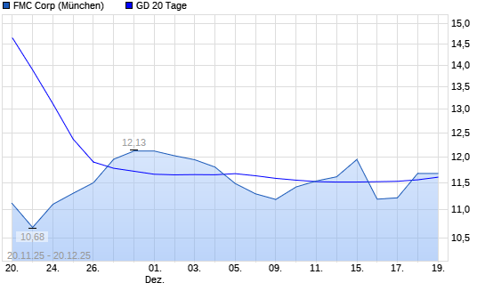 Mit dem Rücksetzer auf 11,59 EUR hat die FMC-Aktie am 19.12.2025 die 20-Tage-Linie nach unten gekreuzt.Die FMC-Aktie befindet sich seit dem 05.12.2024 im langfristigen Abwärtstrend und ...weiterlesen