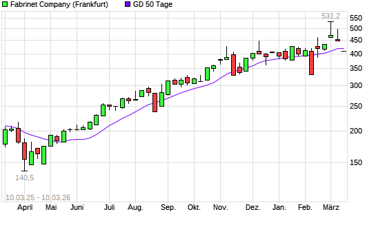 Mit dem Rücksetzer auf 408,60 EUR hat die Fabrinet-Aktie am 09.03.2026 die 50-Tage-Linie nach unten gekreuzt.Der Abstand zur 200-Tage-Linie beträgt aktuell +20,85%. ...weiterlesen