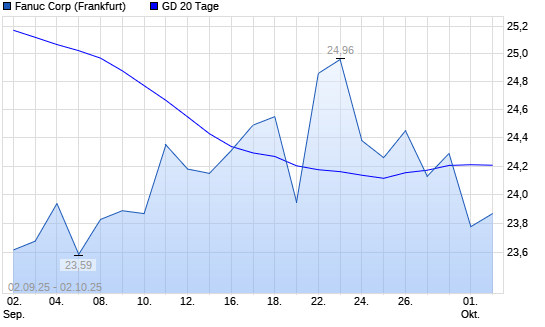Mit dem Rücksetzer auf 23,78 EUR hat die Fanuc-Aktie am 01.10.2025 die 20-Tage-Linie nach unten gekreuzt.Die Fanuc-Aktie befindet sich seit dem 24.09.2025 im langfristigen Abwärtstrend ...weiterlesen