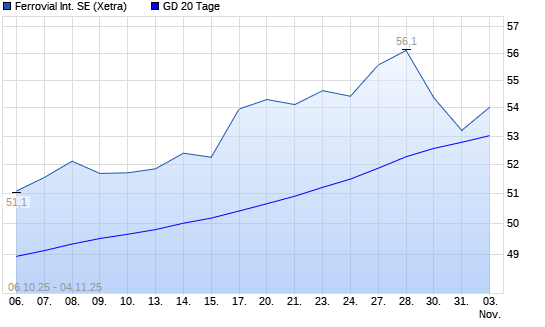 Mit dem Anstieg auf 53,34 EUR hat die Ferrovial-Aktie am 03.11.2025 die 20-Tage-Linie nach oben gekreuzt.Die Ferrovial-Aktie befindet sich seit dem 15.04.2025 im langfristigen Aufwärtstrend ...weiterlesen