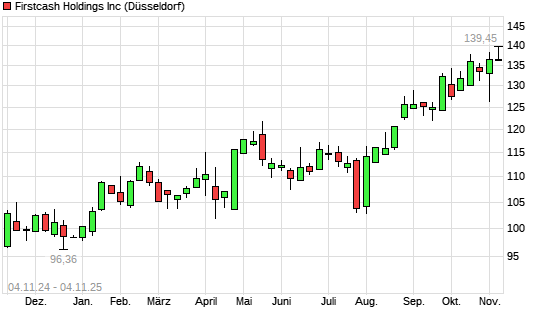 Mit dem Anstieg auf 137,75 EUR hat die FirstCash Holdings-Aktie (ISIN US33768G1076) am 03.11.2025 ein neues All-Time-High erreicht und damit den Kurs vom 15.10.2025 eingestellt.Die FirstCash ...weiterlesen