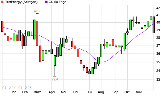 Mit dem Rücksetzer auf 38,80 EUR hat die FirstEnergy-Aktie am 03.12.2025 die 50-Tage-Linie nach unten gekreuzt.Die FirstEnergy-Aktie befindet sich seit dem 24.09.2025 im langfristigen Aufwärtstrend ...weiterlesen