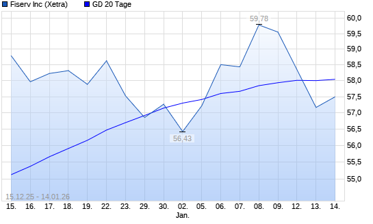 Mit dem Anstieg auf 57,29 EUR hat die Fiserv-Aktie am 22.01.2026 die 50-Tage-Linie nach oben gekreuzt.Die Fiserv-Aktie befindet sich seit dem 24.04.2025 im langfristigen Abwärtstrend und hat ...weiterlesen