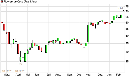 Mit dem Anstieg auf 71,50 EUR hat die Flowserve-Aktie (ISIN US34354P1057) am 09.02.2026 ein neues All-Time-High erreicht und damit den Kurs vom 04.02.2026 eingestellt.Die Flowserve-Aktie befindet ...weiterlesen