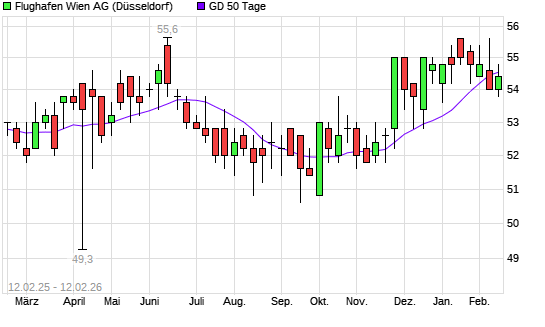 Mit dem Rücksetzer auf 54,80 EUR hat die Flughafen Wien-Aktie am 11.02.2026 die 50-Tage-Linie nach unten gekreuzt.Die Flughafen Wien-Aktie befindet sich seit dem 24.11.2025 im langfristigen ...weiterlesen