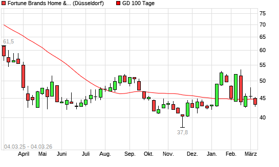 Mit dem Rücksetzer auf 44,20 EUR hat die Fortune Brands Home & Security-Aktie am 03.03.2026 die 100-Tage-Linie nach unten gekreuzt.Die Fortune Brands Home & ...weiterlesen