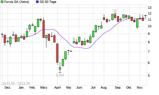Mit dem Anstieg auf 11,52 EUR hat die Forvia-Aktie am 12.11.2025 die 50-Tage-Linie nach oben gekreuzt.Die Forvia-Aktie befindet sich seit dem 24.06.2025 im langfristigen Aufwärtstrend und hat ...weiterlesen
