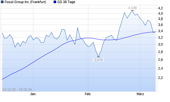 Mit dem Rücksetzer auf 3,35 EUR hat die Fossil-Aktie am 09.03.2026 die 38-Tage-Linie nach unten gekreuzt.Die Fossil-Aktie befindet sich seit dem 19.11.2025 im ...weiterlesen