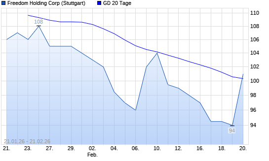 Mit dem Anstieg auf 101,00 EUR hat die Freedom Holding-Aktie am 20.02.2026 die 20-Tage-Linie nach oben gekreuzt.Die Freedom Holding-Aktie befindet sich seit dem 21.10.2025 im ...weiterlesen