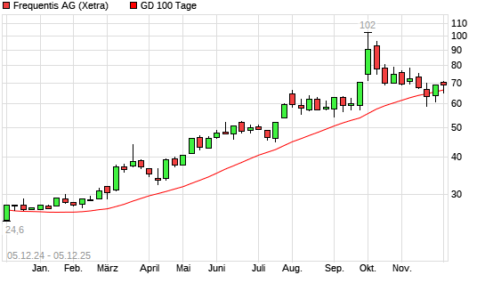 Mit dem Anstieg auf 67,60 EUR hat die Frequentis-Aktie am 04.12.2025 die 100-Tage-Linie nach oben gekreuzt.Die Frequentis-Aktie befindet sich seit dem 07.02.2025 im langfristigen Aufwärtstrend ...weiterlesen