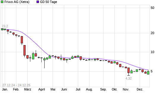 Friwo ist Teil des 335 Titel umfassenden Anlageuniversum des boerse.de-Signale Aktien DACH. In der großen Trendauswertung vom 02.01.2026 bleibt der Titel unverändert auf Rang 328.Gesteuert wird ...weiterlesen