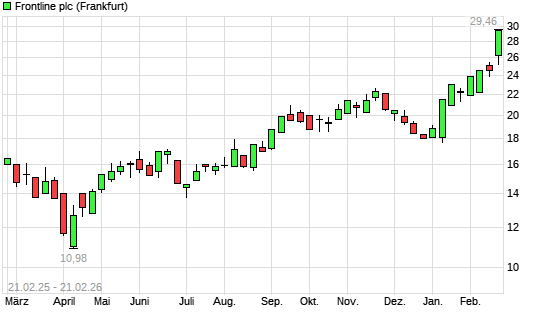 Mit dem Anstieg auf 29,46 EUR hat die Frontline-Aktie (ISIN CY0200352116) am 20.02.2026 ein neues 10-Jahres-Hoch erreicht und damit den Kurs vom 19.02.2026 eingestellt.Die ...weiterlesen