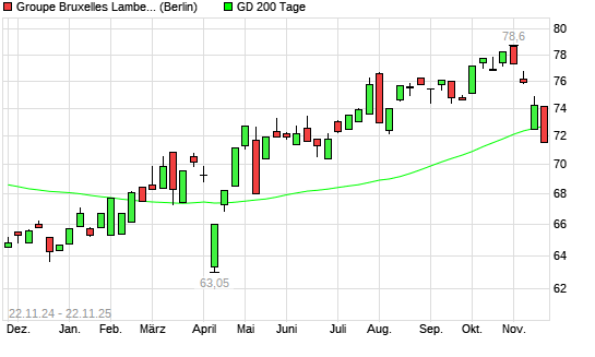 Mit dem Rücksetzer auf 71,60 EUR hat die GBL-Aktie am 21.11.2025 die 200-Tage-Linie nach unten gekreuzt.Die GBL-Aktie befand sich seit dem 20.11.2025 im langfristigen Aufwärtstrend und ...weiterlesen