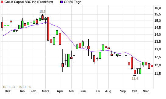 Mit dem Rücksetzer auf 11,90 EUR hat die GOLUB CAPITAL BDC-Aktie am 14.11.2025 die 50-Tage-Linie nach unten gekreuzt.Die GOLUB CAPITAL BDC-Aktie befindet sich seit dem 31.03.2025 im langfristigen ...weiterlesen