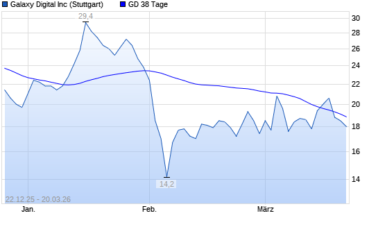 Mit dem Rücksetzer auf 17,70 EUR hat die Galaxy Digital-Aktie am 19.03.2026 die 38-Tage-Linie nach unten gekreuzt.Die Galaxy Digital-Aktie befindet sich seit dem 02.02.2026 ...weiterlesen