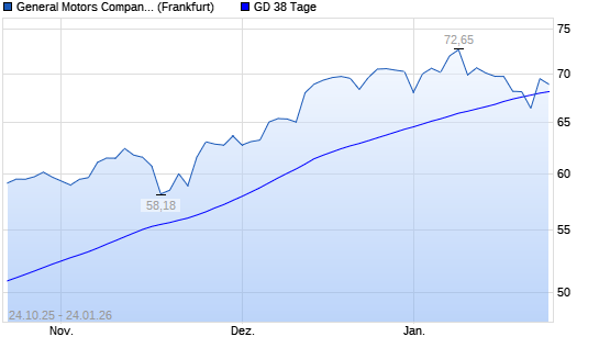 Mit dem Rücksetzer auf 68,89 EUR hat die General Motors-Aktie am 23.01.2026 die 38-Tage-Linie nach unten gekreuzt.Die General Motors-Aktie befindet sich seit dem 11.08.2025 im langfristigen ...weiterlesen