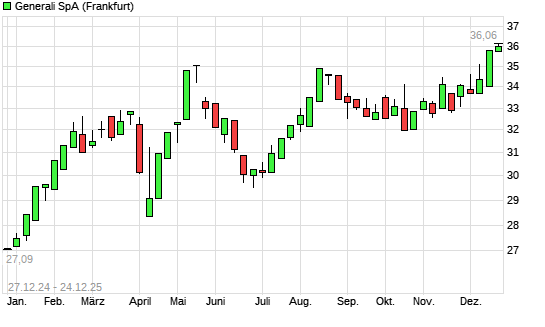 Mit dem Anstieg auf 36,00 EUR hat die Generali-Aktie (ISIN IT0000062072) am 23.12.2025 ein neues 10-Jahres-Hoch erreicht und damit den Kurs vom 22.12.2025 eingestellt.Die Generali-Aktie befindet ...weiterlesen