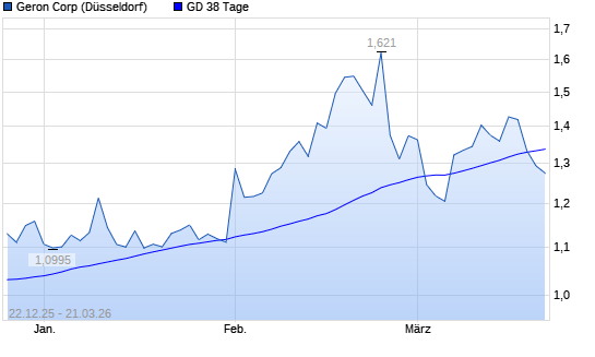 Mit dem Rücksetzer auf 1,31 EUR hat die Geron-Aktie am 20.03.2026 die 38-Tage-Linie nach unten gekreuzt.Die Geron-Aktie befindet sich seit dem 03.02.2026 im ...weiterlesen